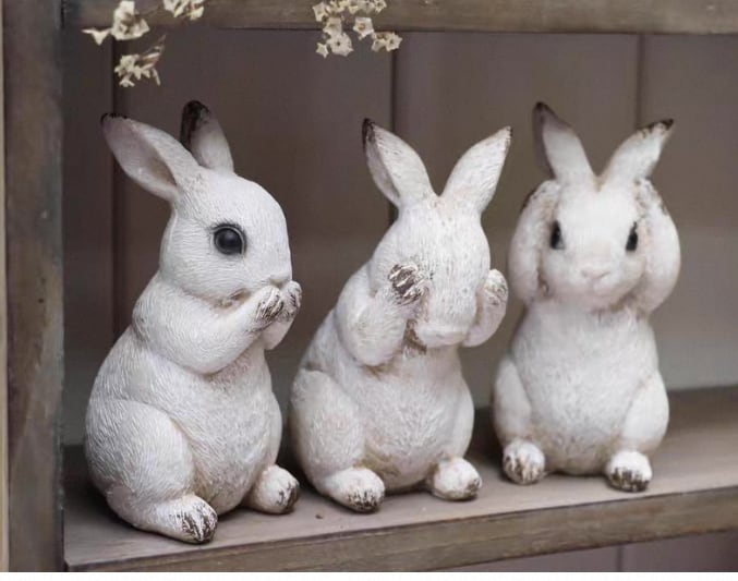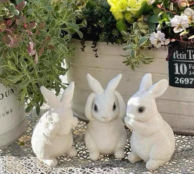 【3set】Antique rabbit stand【m1252】うさぎガーデン置物3点セット