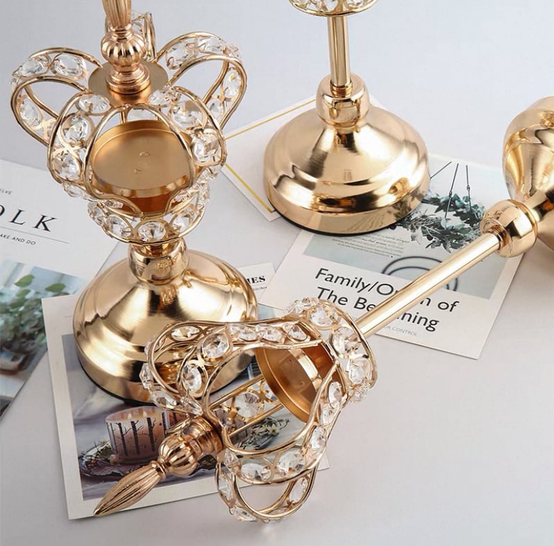 3 sizes of gold crown object stands